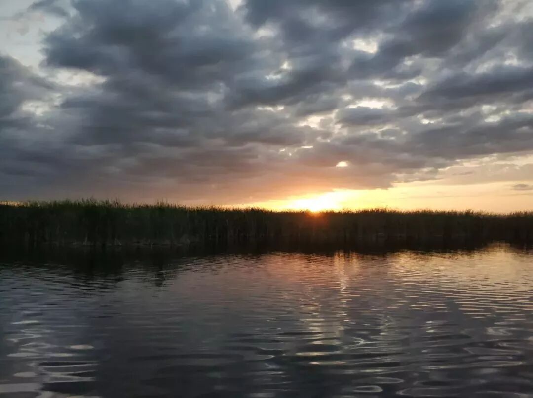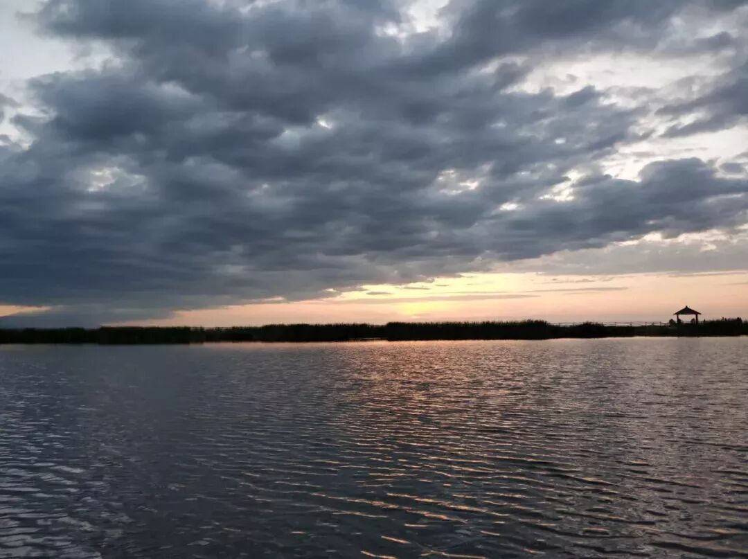 “落霞與孤鶩齊飛,秋水共長天一色”,描述江南水鄉的絕唱放在新疆巴里坤,更別有一份遼闊壯美。
