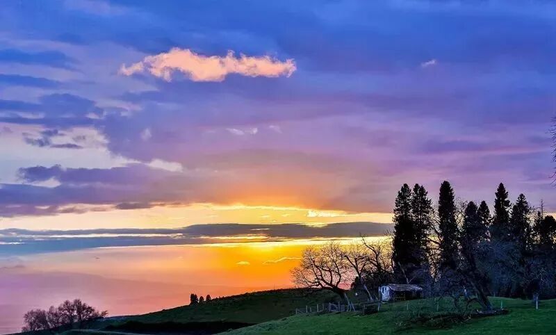 每當夕陽西下,那拉提便被金色的陽光鋪滿大地。
