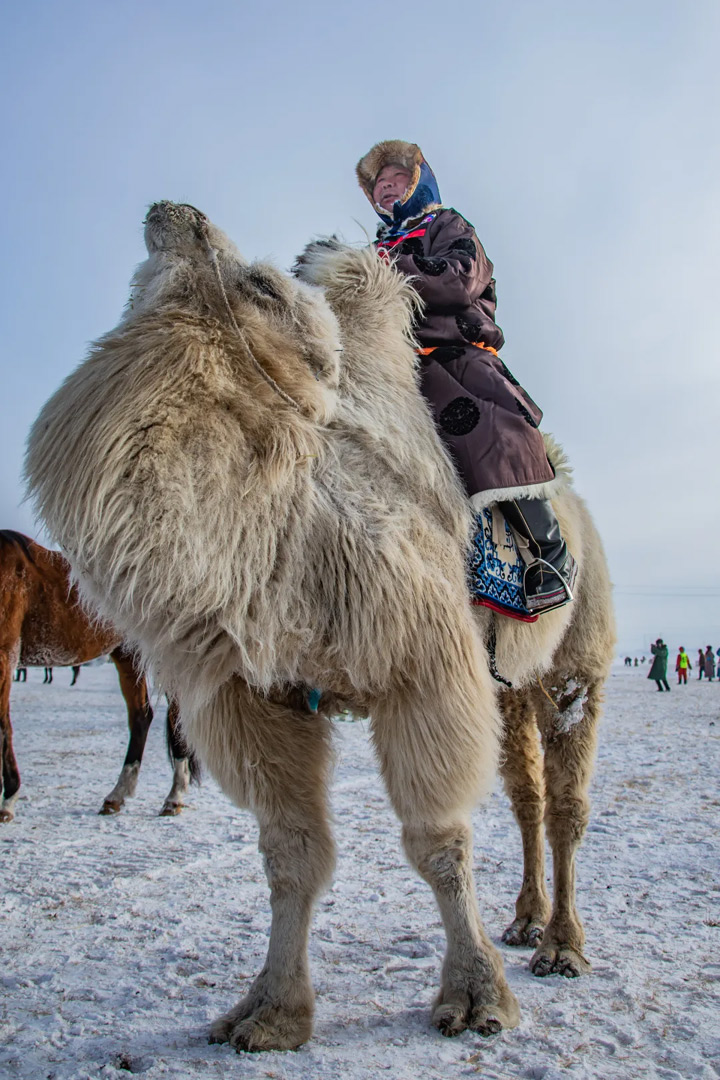 蒙古族居住於蒙古高原,氣候寒冷又加之以遊牧爲主,馬上活動的時間比較長,因此,其服飾必須有較强的防寒作用而且又便於騎乘,長袍、坎肩、皮帽、皮靴自然就成了他們的首選服飾。