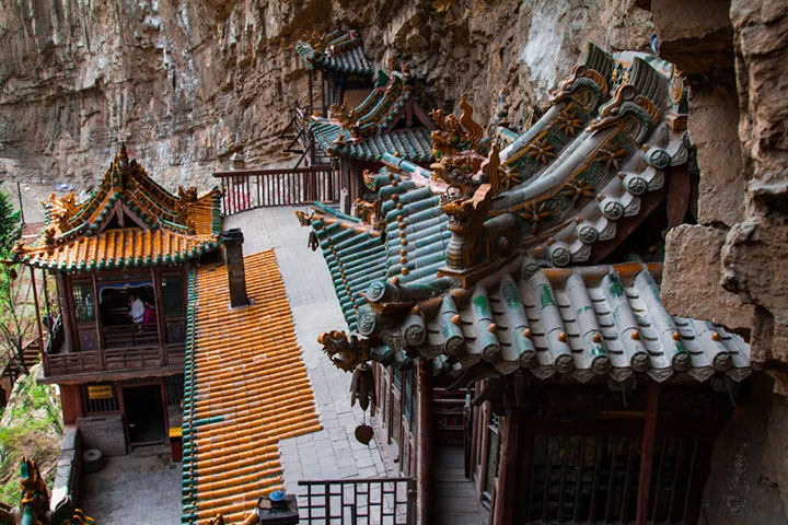 難以想像,1500年前,古人是如何在這樣陡峭的崖璧之上,建造了這樣一座精美的寺廟。