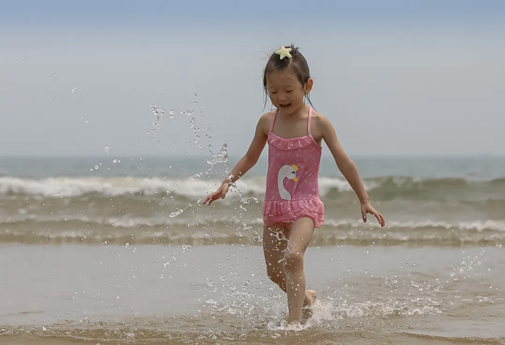 龍灣浴場海水潔淨,坡緩沙細