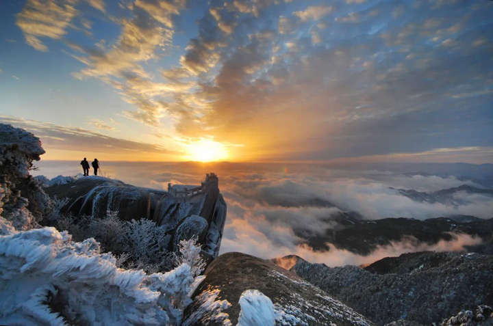 山勢雄偉高險,自然雲遮霧繞。在天柱山還可見到一道獨特的景觀—天柱晴雪。
