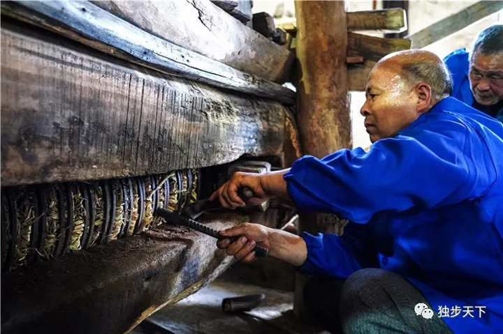△ 介橋村傳統榨油-人工壓實