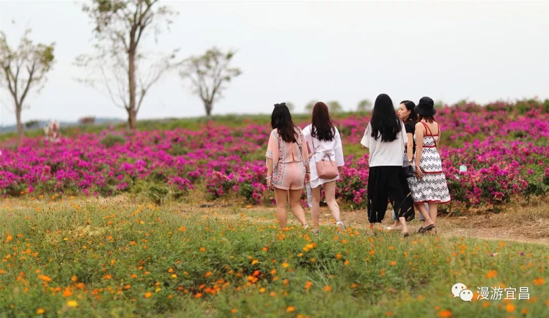 三五個好友在花海裡悠閒漫步