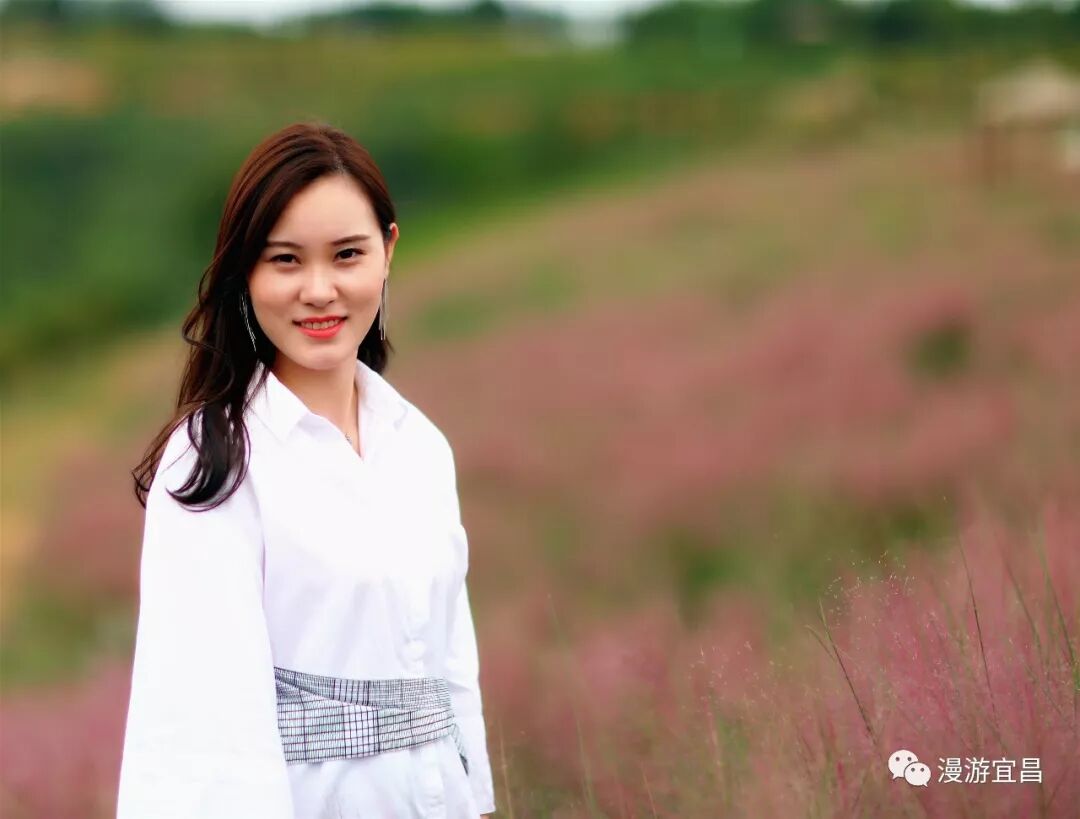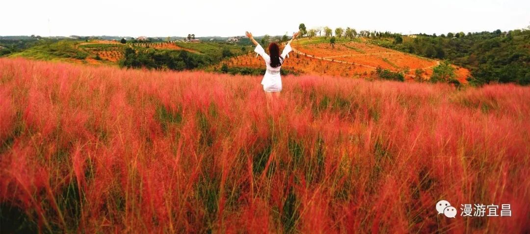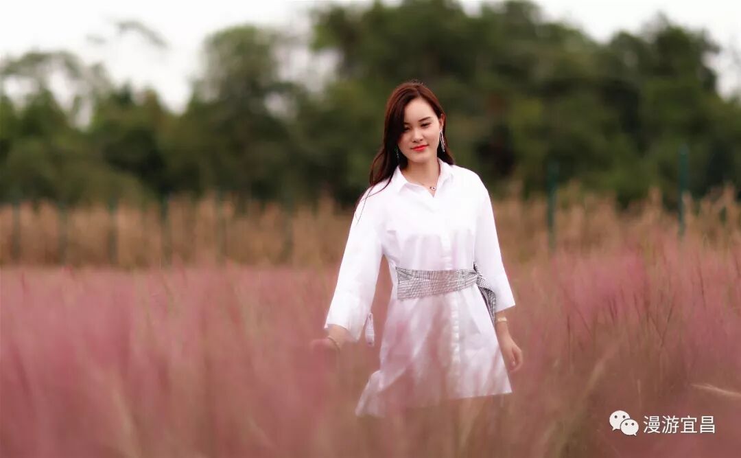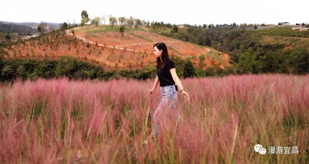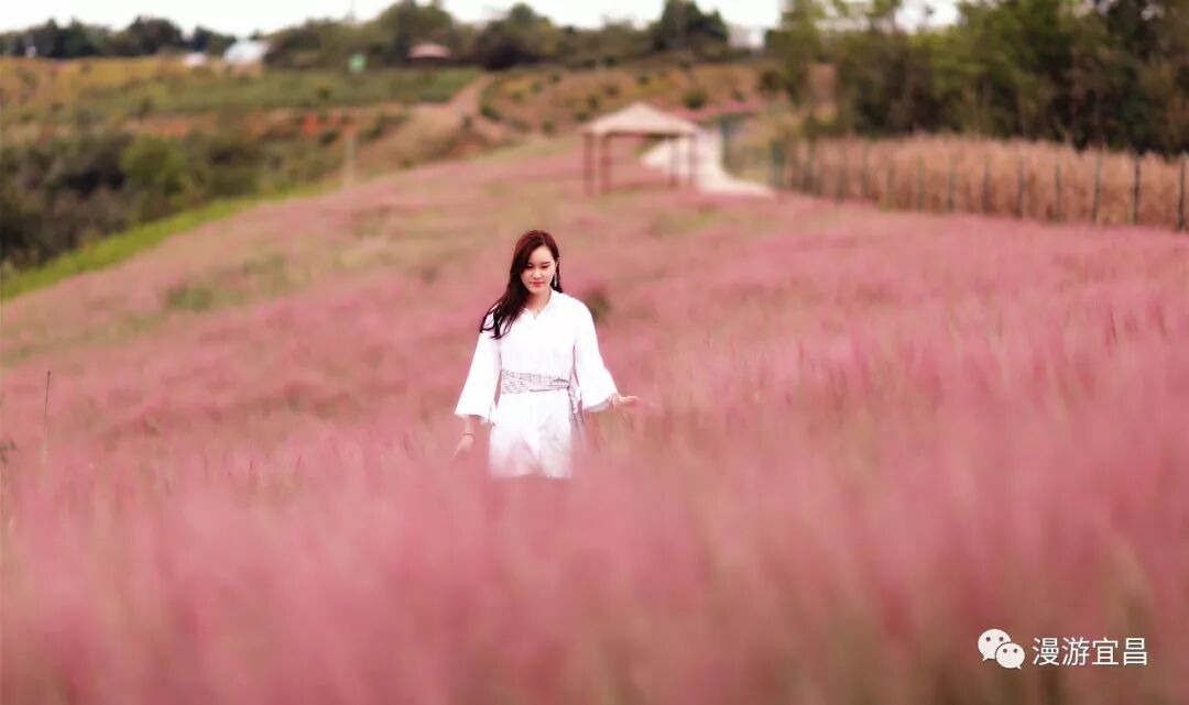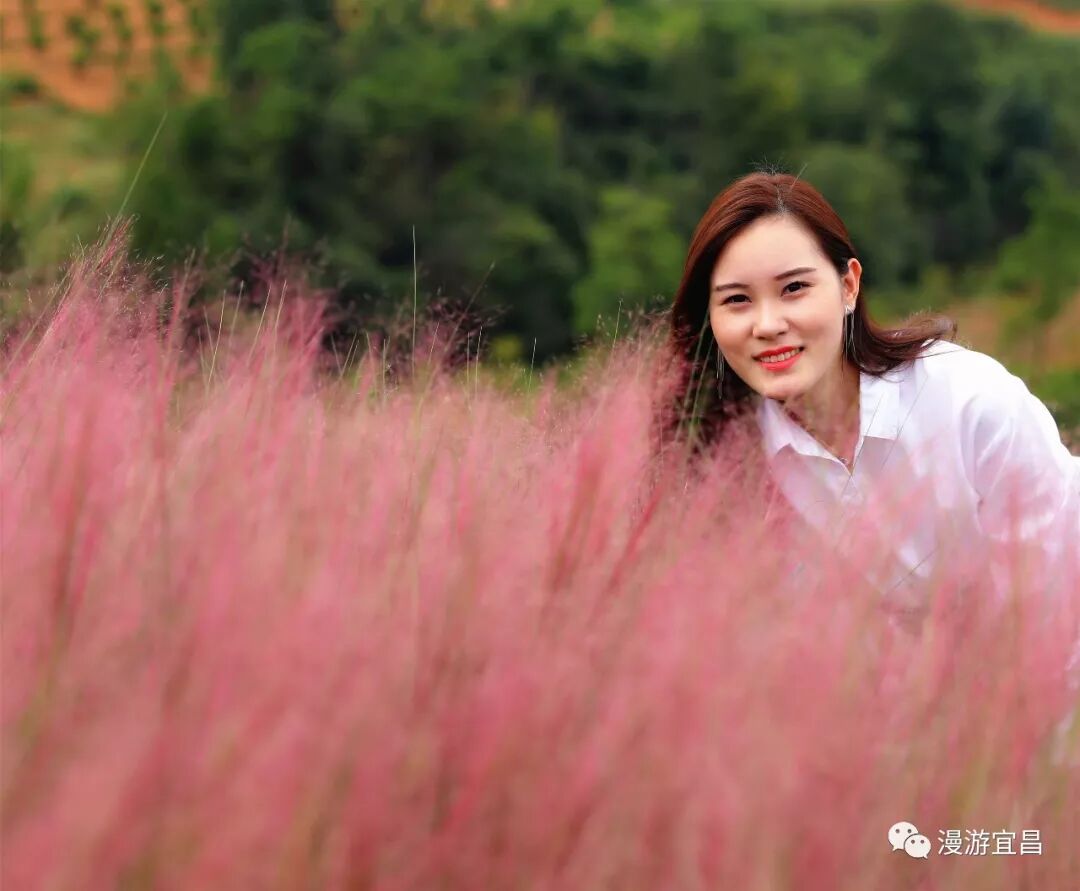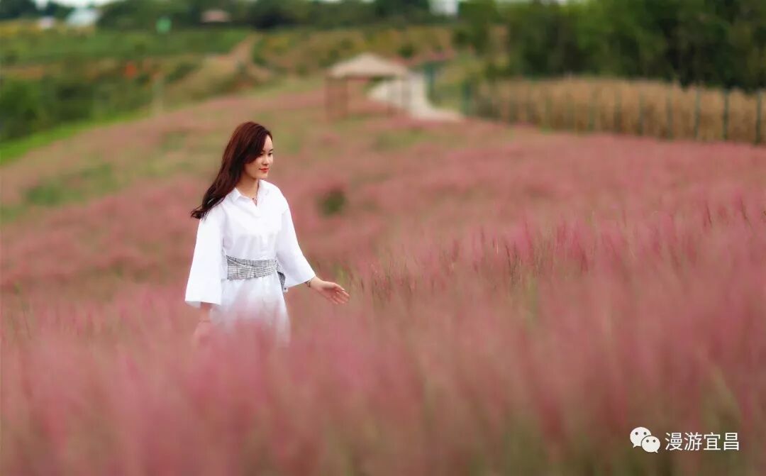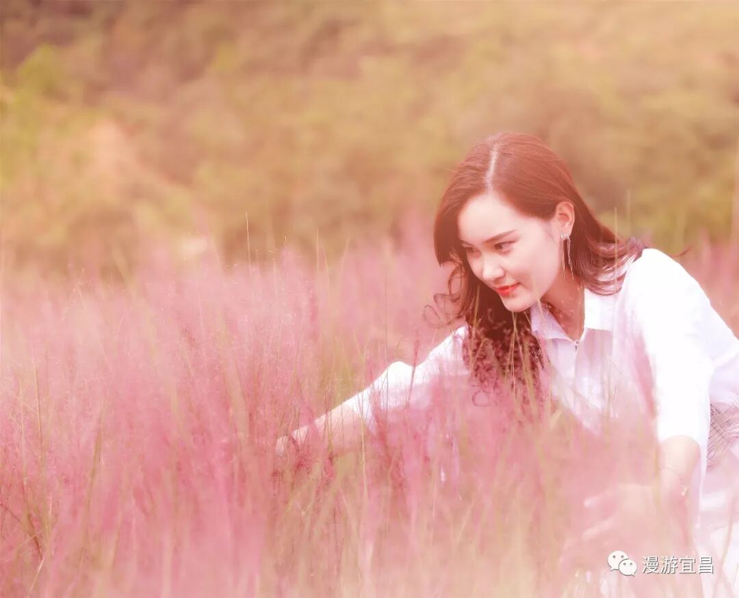 半身高的粉黛亂子草縈繞身側