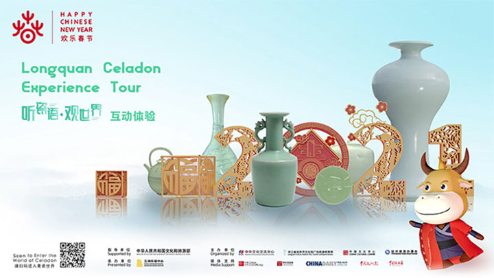 “聽瓷語 觀世界”互動體驗通過展示唯一入選世界“非遺”技藝的龍泉青瓷,在“歡樂春節”的氣氛中,以全新技術營造“中華傳統文化”與全球民眾“雲端”交流互鑒,引導觀眾“親臨”龍泉、親身感受傳承、品味青瓷、走近大師、見證千年窯火。借助全三維場景交互,身臨其境探訪龍泉青瓷從幽林深山中“泥土”到璀璨瑰寶的轉化,感受青瓷文化驚豔世界的千年時光。