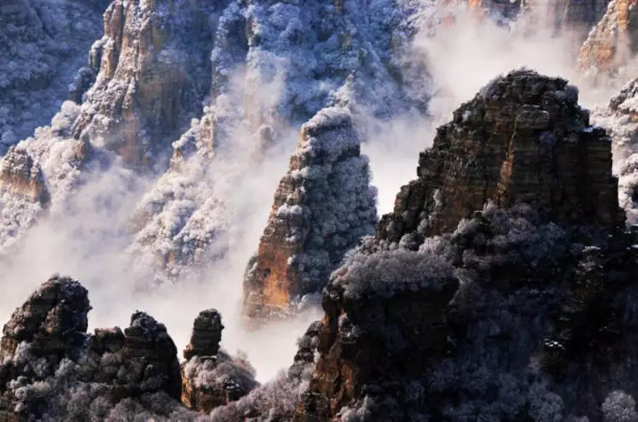 夏季有三分之二的天氣會出現雲霧。當雲霧縈繞在峰谷之間,山峰時隱時現,時而雲霧如海、波濤洶湧,時而如輕紗幔帳,恍若置身仙境之中。