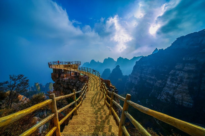 爬白石山的路多以棧道為主。白石山千峰萬仞,如刀削斧劈,險壑縱佈,又如萬丈深淵,單壁高差巨大難以逾越。給人“險”的感覺,走在山中,半步一風景,一步一驚險。