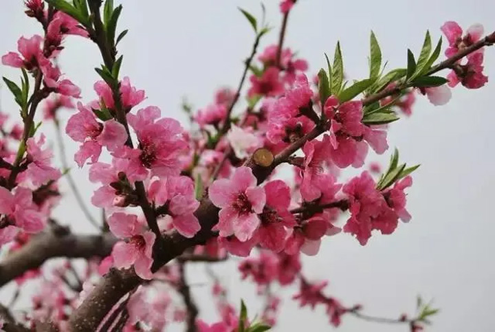 一株株桃花已悄然綻放