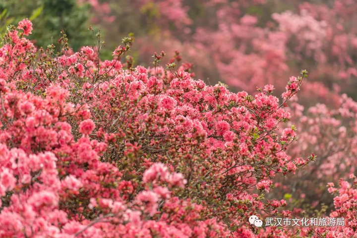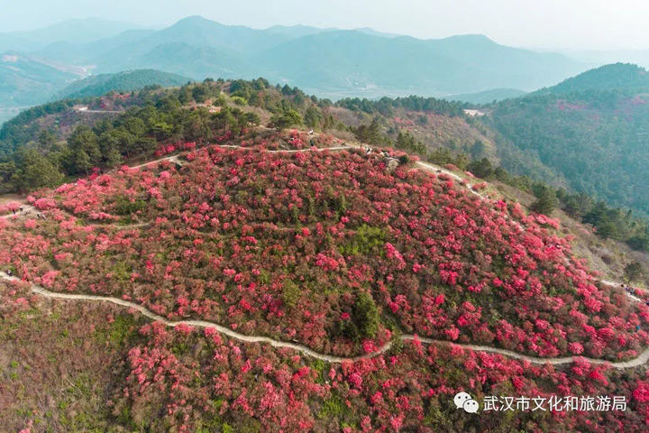 12 . 春神在人間點了一把火,燒出了杜鵑花海。人間四月天,雲霧山杜鵑花開,漫山遍野紅得轟轟烈烈。有人嫌走在杜鵑花谷還不盡興,轉身坐上直升機俯瞰十里映山紅。