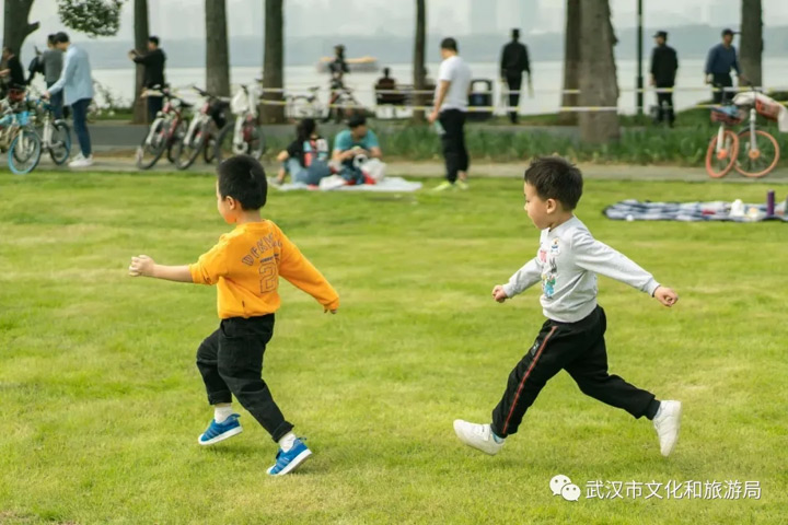 9 . 到磨山踏青,總會遇到幾波來春遊的小學生。在草地上吹泡泡、分零食,童聲稚嫩,笑聲朗朗,好像吃可愛多長大的。