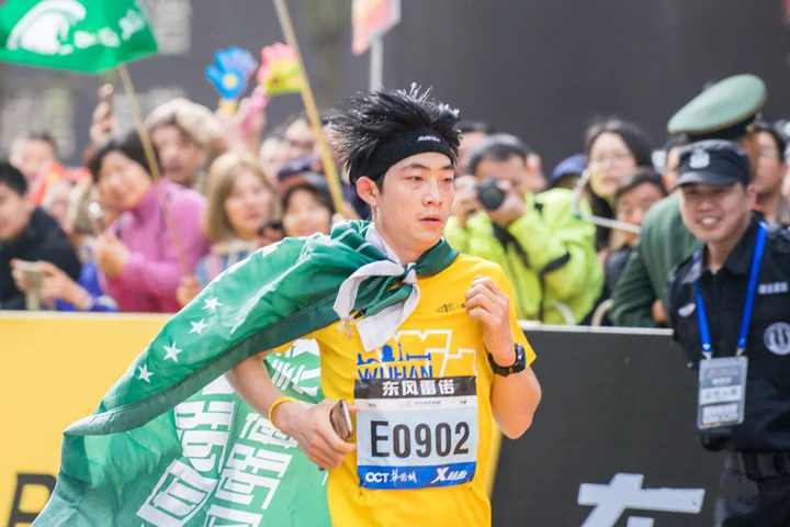 16 . 賽道風景一絕的漢馬,是武漢春天專屬的全民狂歡。跑過黃鶴樓,選手在長江大橋上看到江上波光粼粼,整個城市都在歡呼。