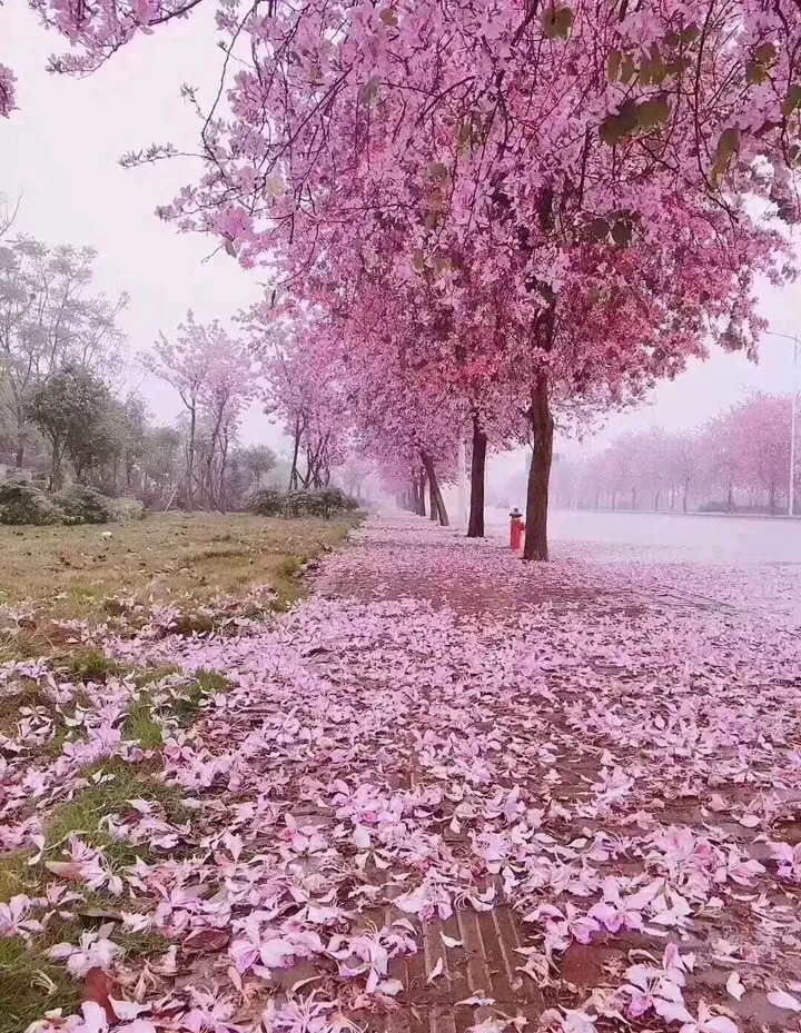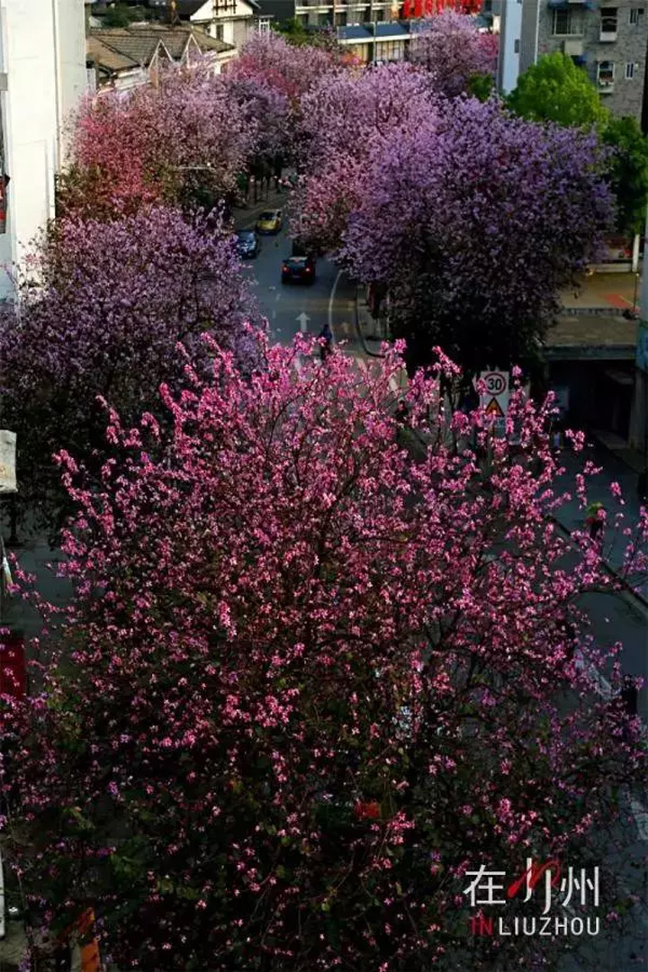 柳州街頭巷尾的紫荊花花開成海,刷屏朋友圈。