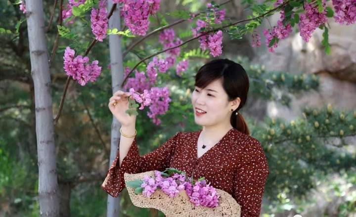 在羅山,你還能看到罕見的粉色槐花