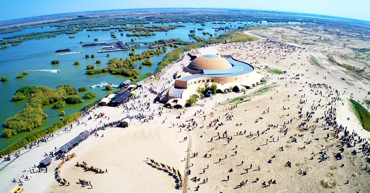 黃沙古渡原生態旅遊景區是國家級濕地公園,在這裡可以親臨康熙大帝渡黃河的古渡口、昭君出塞和親留大漠的月牙湖。