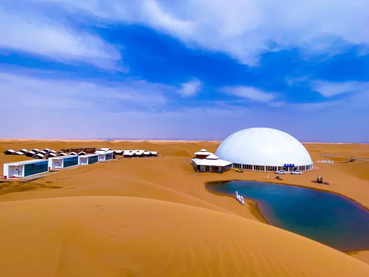 騰格里沙漠濕地旅遊區被譽為寧夏沙漠“美女”中的“三姑娘”。精心打造的集餐飲、住宿、休閒、娛樂為一體的西北首家高端休閒度假別墅區。