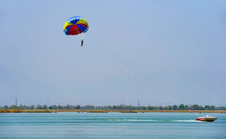 沙湖南面是一片面積3萬畝的沙漠,它和這萬畝湖水似乎是天造地設的伴侶,一處融江南秀色與塞外壯景於一體的“塞上明珠”。