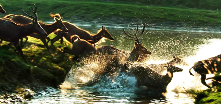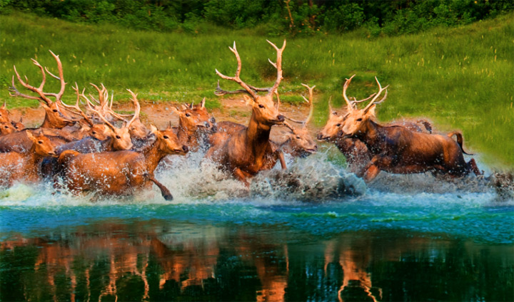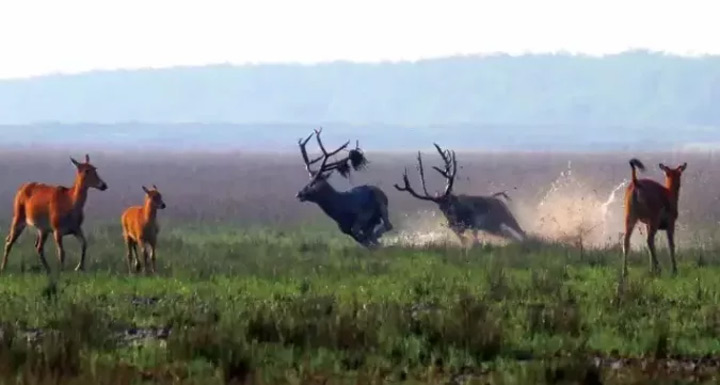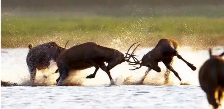 朝陽初升正是鍛煉的好時候,雄性麋鹿或單兵作戰,或團體拉練,或模擬演練,紛紛練出強健的肌肉,練出健美的線條,練出睥睨天下的殺氣…