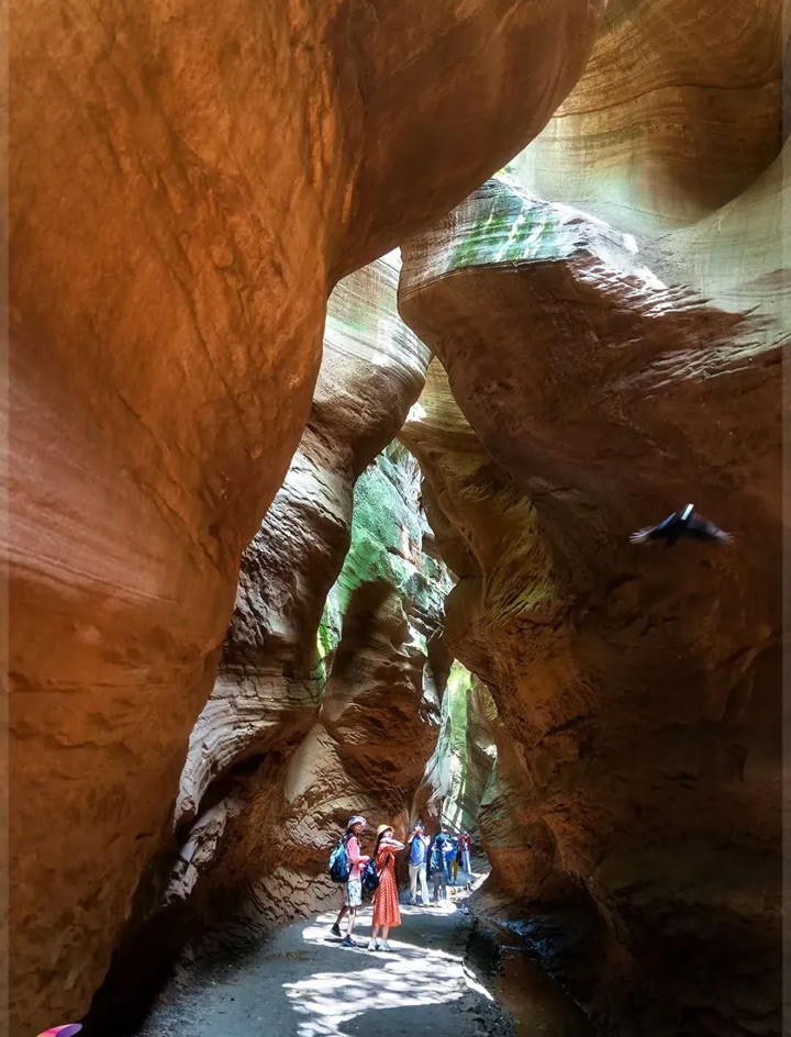 樺樹溝峽谷是所有峽谷中風景最為獨特的峽谷之一,也是最有名氣的峽谷,此谷有攝影家的天堂之美譽。峽谷全長約300公尺,高20~25公尺,寬1~2公尺,谷底最窄20公分。遊覽時間約40分鐘,不需要原路返回。峽谷內常年溪水潺潺,崖壁上綠苔茵茵,谷內光影綺麗交織,絢爛迷離;紋理波浪起伏,綿長細膩;“人祖圖騰”、“仙女思凡”、“時光隧道”等微景觀美輪美奐。