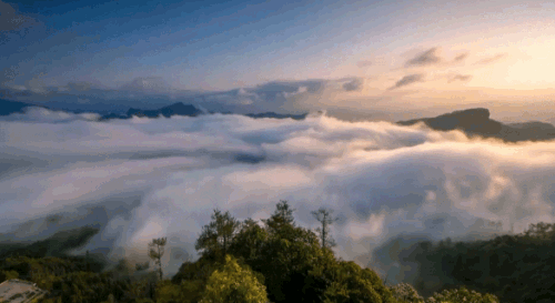 你可以清晨看朝陽,看雲霧纏繞山峰,感受那一束光劃破黑夜帶來的溫暖。