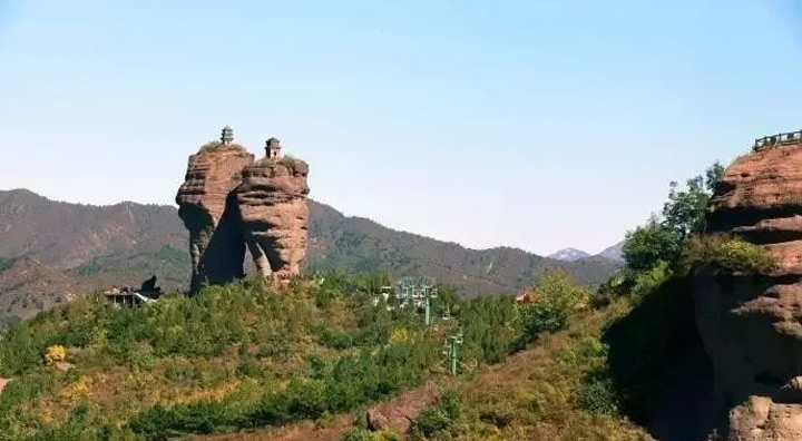 雙塔山 雙塔山為承德名山之一,附近風光秀麗,灤河水從後山蜿蜒東流,山間花樹蔥蘢,山下原有石馬、石凳、石洞等勝景。山巒奇秀,怪石崢嶸,現已辟為遊覽點。雙塔山山奇、水奇、林奇、石奇、塔奇、洞奇,大自然的鬼斧神工攢成了奇異的自然景觀。1300多年以前,契丹人在雙塔峰頂建造的兩座古塔更給整個景區增添了神秘色彩。景區內林壑優美,溪水奔流,怪石嶙峋,鳥語花香。清朝的康熙、乾隆、嘉慶皇帝以及文武名臣曾多次登臨,且遺跡成篇。