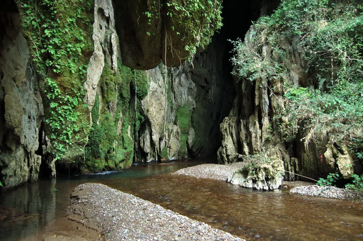 在這個充滿聲波的洞口,隨著流水聲往岩洞裡探尋,潺潺的流水聲好像一首溫柔的曲子拂過溫柔的江面。