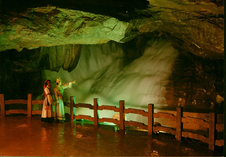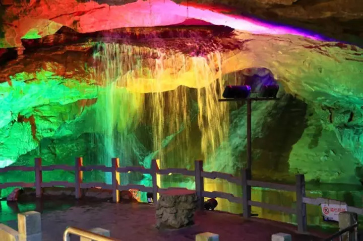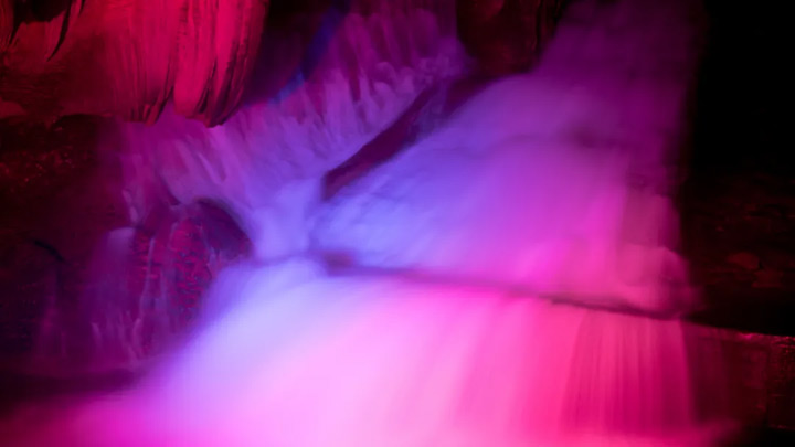 閃爍的流水將燈光反射到洞壁上,壁上佈滿了一幅幅轉瞬即逝的抽象畫,完成了由聲波到光波的轉換。