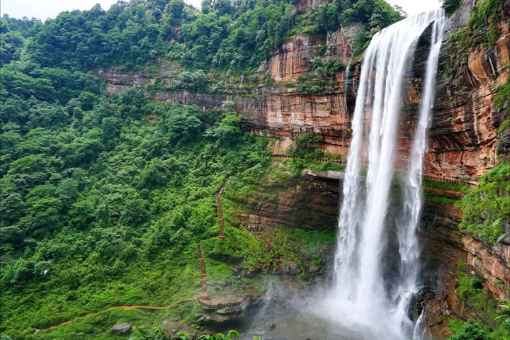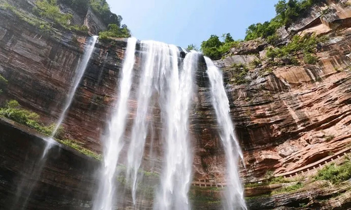 四面山大瀑布是中國最大的心型瀑布即天下第一心,因瀑布的整個輪廓和瀑布周邊的植被形成鮮明的對比,從而形成了一個純天然的巨大的心形瀑布,十分壯觀!