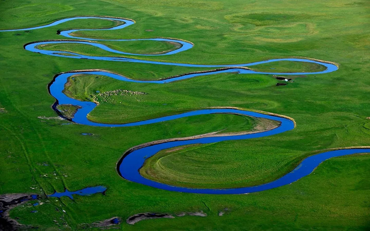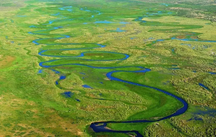 又或是止步於一片窪地中,形成點綴在河流末端的湖泊。