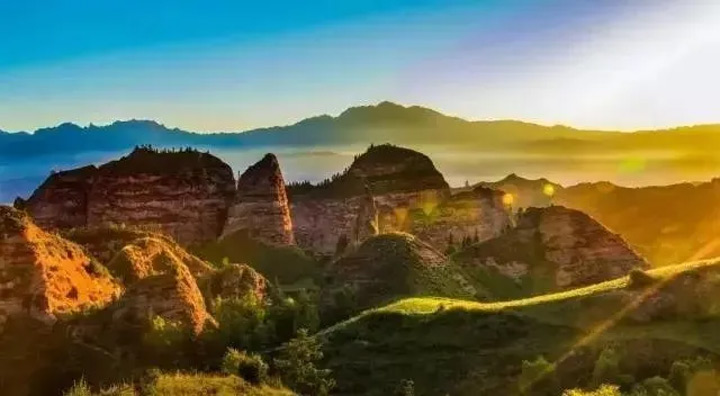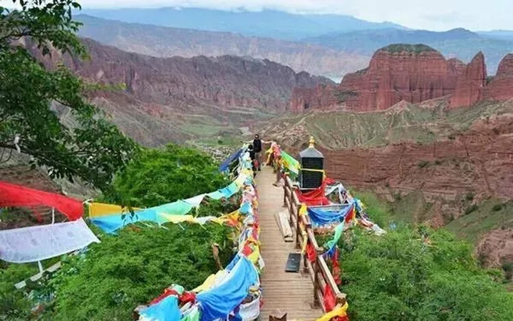 坎布拉國家森林公園位於青海省尖紮縣西北部,該風景區為拉脊山支脈,由山地、風蝕殘丘、山間小盆地相間組成,地層構成以紅色砂礫岩為主。坎布拉國家森林公園有景點五十多處,是以丹霞地貌為主體景觀,並兼有宏大的李家峽水電工程,是以遊覽觀賞、消夏避暑為主要功能的綜合性自然風景名勝旅遊區。坎布拉丹霞地貌多以奇峰、方山、洞穴、峭壁為其主要地貌特徵。大型山體如柱狀、塔形、城堡,陡峭直立,雄偉壯觀,氣宇非凡。小尺度的造型地貌似巨人、獸類,各種造型等栩栩如生,形態千奇百怪,有鬼斧神工之妙。