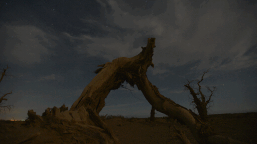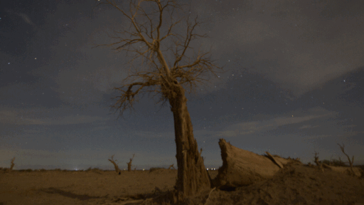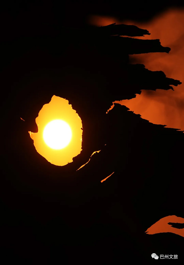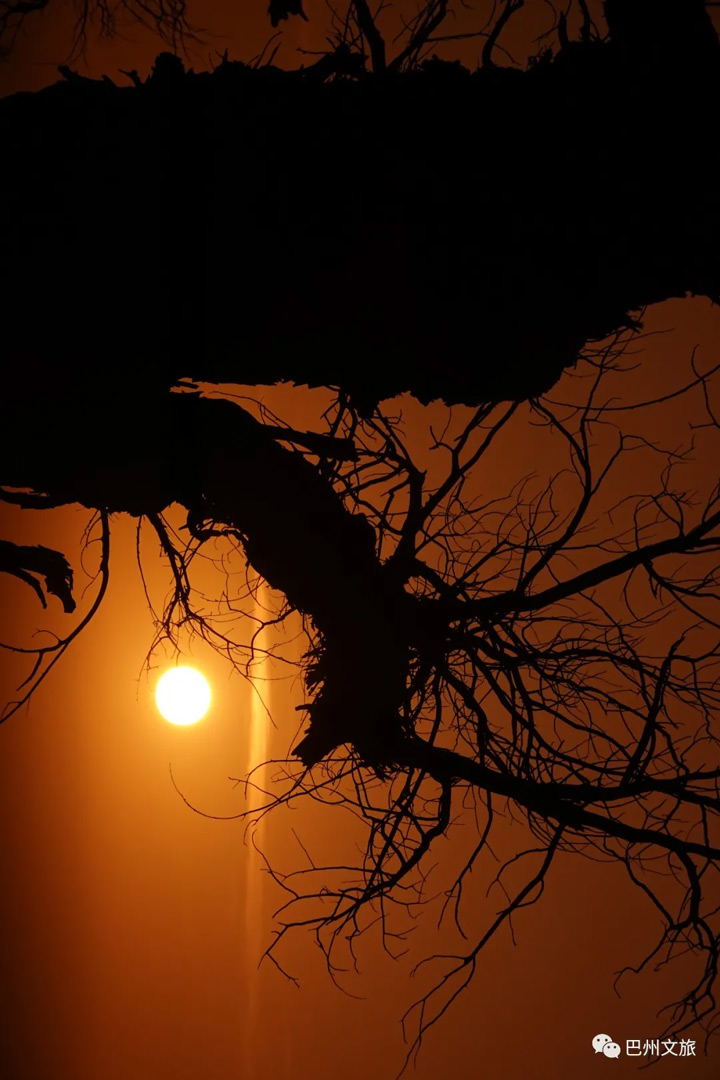 初夏時節,新疆塔里木盆地天氣晴好,“死而不倒一千年,倒而不朽一千年”的胡楊與日出相互映襯,呈現出滄桑壯美的景象。