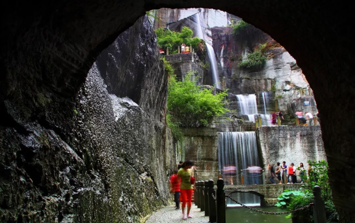 般若谷,被稱為“地下佛國”。瀑布、池水、石階、隧道、地宮,遊玩裝備已為你配齊。飛瀉的瀑布氣勢磅礴,快來這裡清涼一夏!