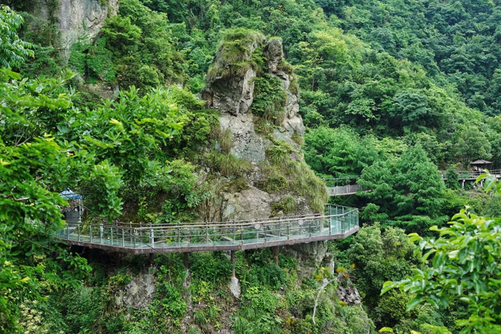 玻璃棧道全長88公尺,垂直高度300多公尺(有100層樓那麼高),是新昌目前最高的玻璃棧道。