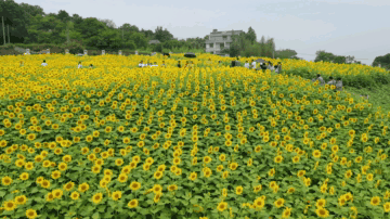 到了向日葵的盛開季,岸邊的向日葵花海也是一大吸引眼球的網紅打卡點,聚集了熙攘的人群。
