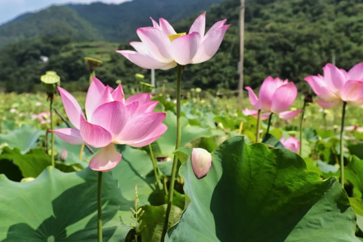 每到夏日,村口成片的荷花,吸引著大批遊人慕名而來。勤勞智慧的茅洋人利用毗鄰河畔,結合窪地開發了80畝荷塘。