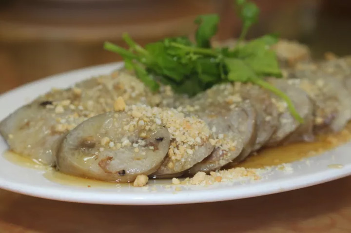 用糯米和各種餡料塞入豬腸製作而成,皮薄,餡飽,圓鼓鼓的,風味獨特,口感豐富。