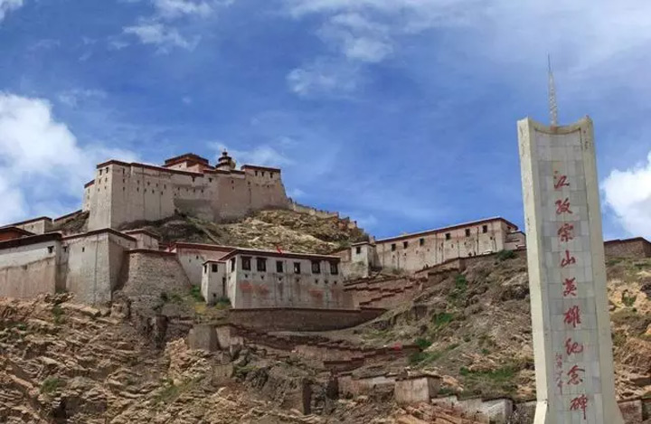 在江孜縣中心的山頂上,突兀拔起一座赭黃色的石山,在石山上又突兀拔起一座白牆紅頂的城堡,這便是聞名中外的江孜宗山抗英遺址。江孜宗山遺址並不高,但江孜周圍地勢平坦,宗山就顯得鶴立雞群了,加上江孜海拔已經4000公尺所以,很早就在宗山上修築城堡,宗山建築約建於14世紀初,全部依山勢由山腰一直建至山頂,建築高大宏偉,居高臨下,氣勢壯麗,落日餘暉,遠眺城堡,震撼人心!