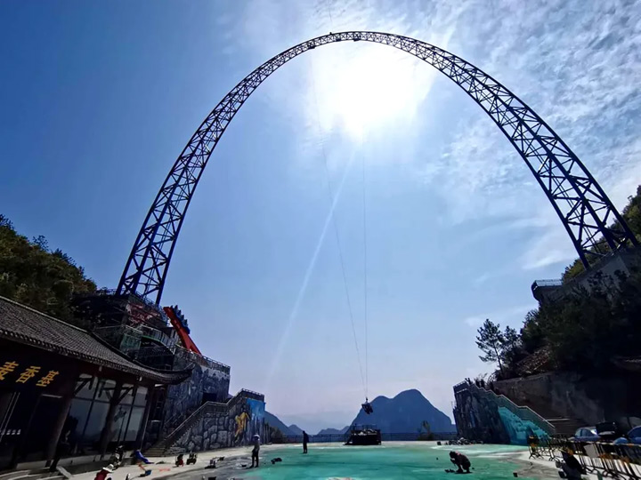 據悉,該鞦韆位於龍缸景區海拔1100多公尺的猴子埡口,建在距離石筍河河面將近700公尺高的懸崖邊緣。大鞦韆最大速度130公里/小時,被稱為“亞洲第一世界第三鞦韆”。目前,該項目還在最後調試階段,待完成後,一起相約盪鞦韆?敢來嗎?