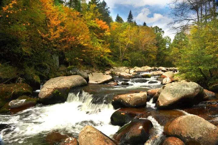 秋風初起,原始林景區內,溪水叮咚,