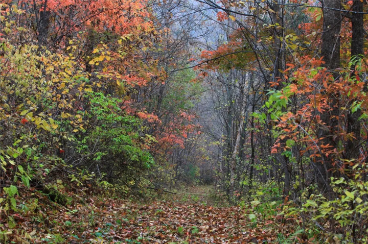 行走在灑滿秋葉的山間小路上,