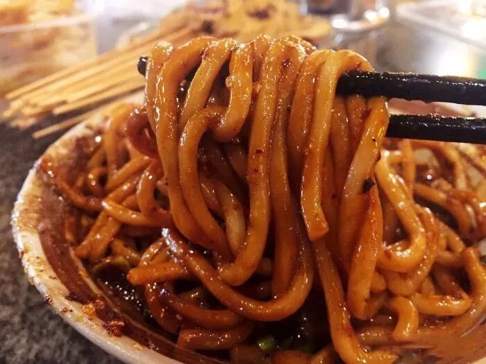 店內小吃無數,光是出餐檔口就有十來個。排隊最長的就是擔擔面啦!麵條口感Q彈筋道,甜辣的味道獨具一格。