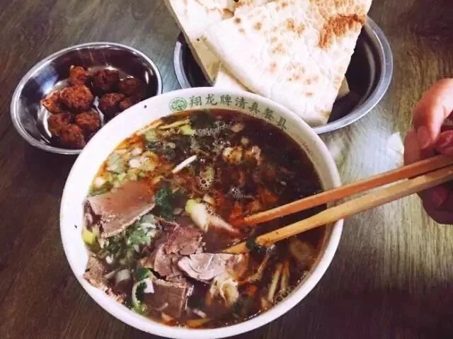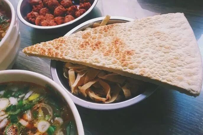 來到這兒一定要嘗下這裡的鍋盔!乾吃比較焦硬,掰開後泡在湯裡,待它吸收湯汁,美味至極!