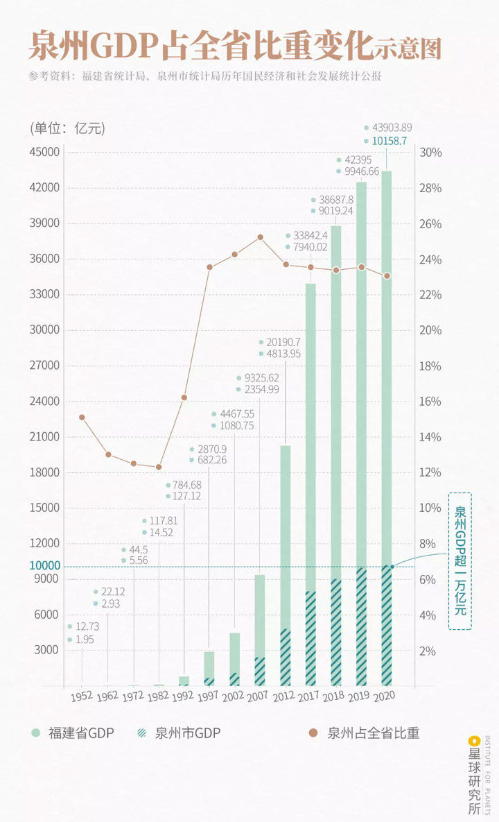 (泉州GDP占全省比重變化示意,僅顯示部分年份,製圖@漢青/星球研究所)