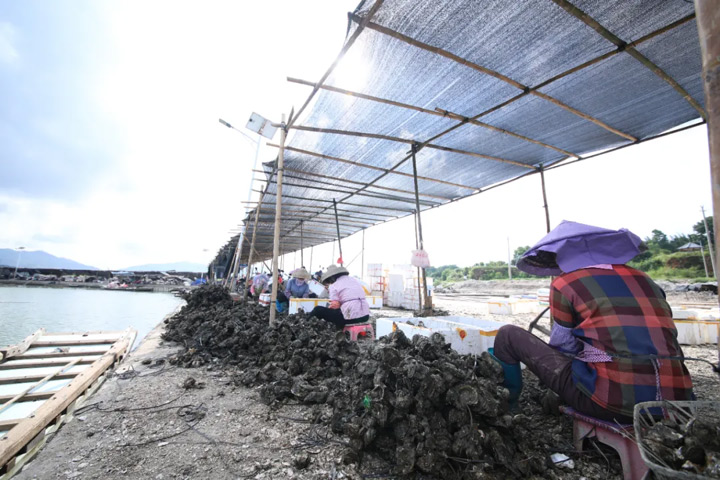 傳來叮叮噹當的敲蠔聲和人們的歡聲笑語