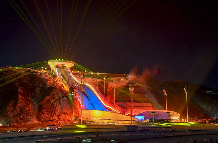 雲頂滑雪公園位於張家口市崇禮縣境內,將承擔自由式滑雪及單板滑雪比賽,賽場內6條賽道已全部建設完成。