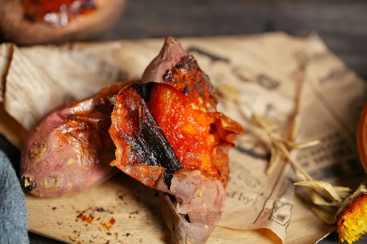 冒著熱氣的烤紅薯