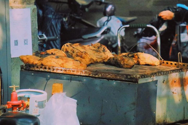 在街邊小攤小店買一個烤紅薯