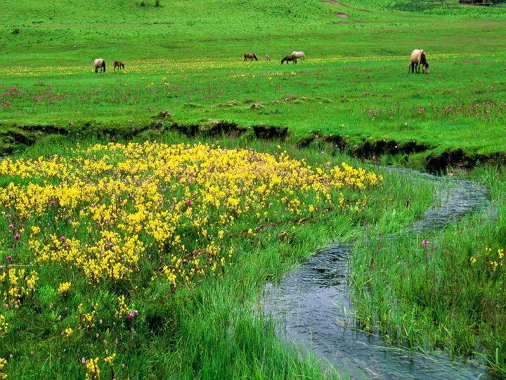洋塘曲在藏語中的意思是"鮮花匯聚的河畔",在春夏時節是一個被鮮花鋪滿的地方。