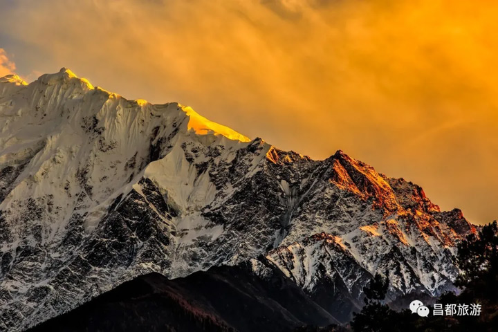 如果你幸運,或許能看到梅里雪山主峰卡瓦格博日照金山的景象…有多少人為了這一畫面來了又走,走了又來;又有多少人苦等多日就是無緣一見。