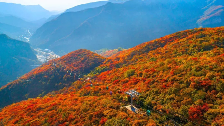 坡峰嶺景區總面積約2000畝,近幾年已成為京郊賞紅葉的新晉聖地。這裡有青山可以攀登,還有山間美宿可以賞花觀星,等到深秋柿子成熟時,還能吃著香甜的柿子,看著滿山的紅葉。